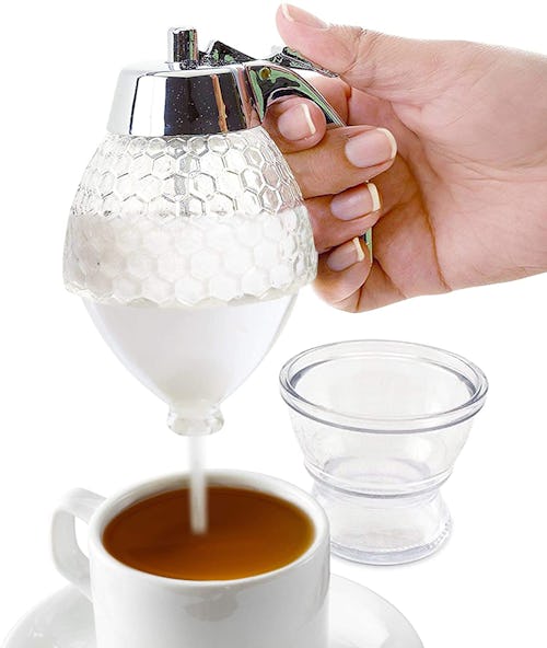 Dispensing sugar into your coffee with this beehive-shaped sugar container is fun and super easy. Just lift it from the stand that catches any stray sweetener, hold it over your cup, and pull the trigger. Let go when your cuppa is sufficiently sugared, and return it to its resting place. It’s mess-free, looks great on the table, and does a good job with honey, too.