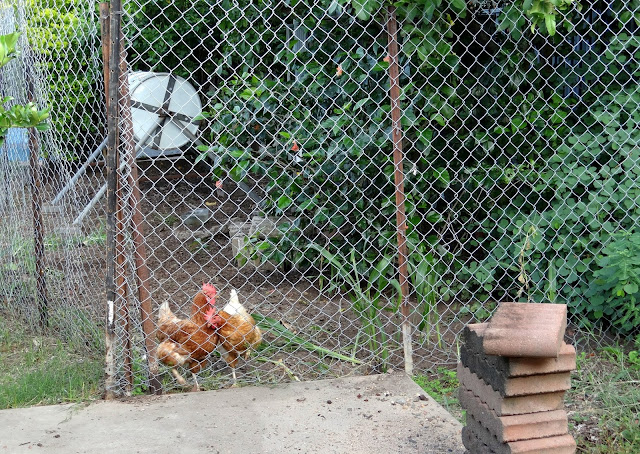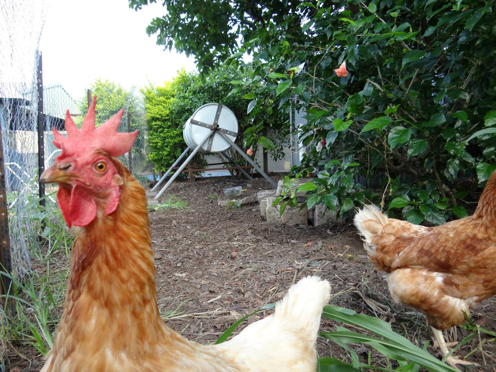 Our hens are back in their coop now that the worst of the wet season is over, although as I write this there is steady rain falling outside.