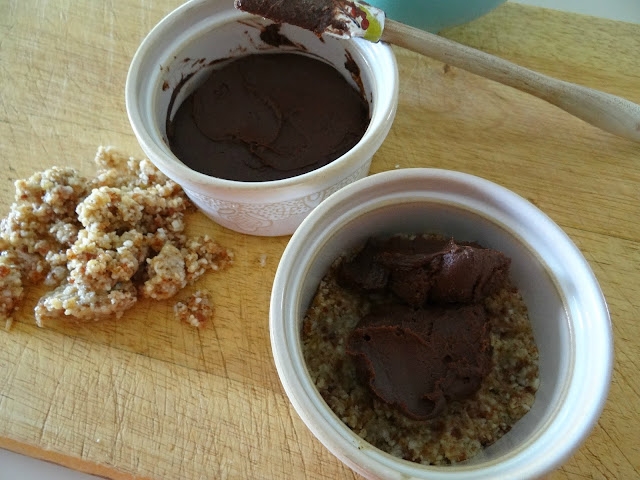 I made a crumb base in my food processor from walnuts, almonds, macadamias and dates which I pressed into four ramekins.