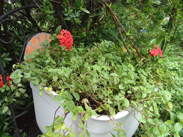 Now I'm waiting to see if the oregano will go to seed as well. It survived the sweltering weather due to sitting in shade under the large Ixora bush all summer.