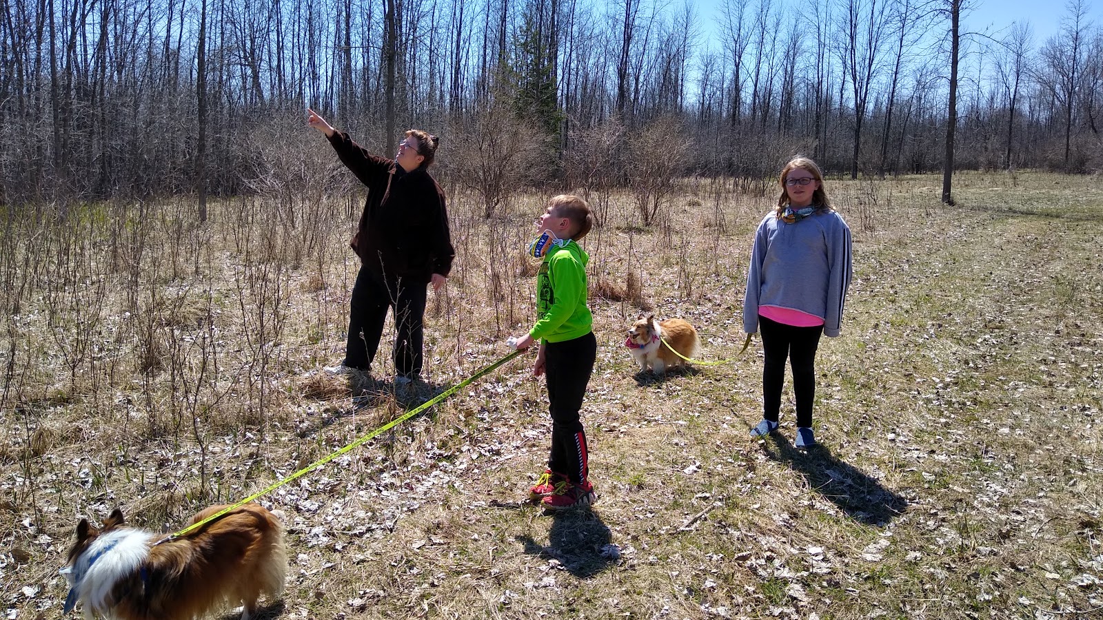 Once that was done, we then headed out for a walk, being properly socially distanced 6 feet apart through the big backyard. The dogs were along with us and Steve brought the leashes so we could hook them up and walk around through the nature preserve.