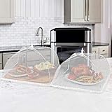 ESFUN - Perfect size the food covers are 17x 17 and accommodate plates with food up to 95 height covering almost plates or bowels with ease Simple functional set of 3 large pop up mesh food covers keep flying insects off your food when entertaining outside fine nylon mesh screen and extra soft wide cloth around the bottom ensure your food and beverages are safe from bugs without affecting the taste Upgraded enhanced framework and premium mesh cover net thicken galvanized steel framework with golden nylon mesh cover make the food cover tent more sturdy and durable additional umbrella knob on the top for controlling open or close solid and easy to use