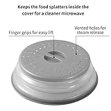 Multiple lid perforations allow steam to escape which keeps food moist while splatters and messes are containedit also has finger grips making it easy to lift Food safe material microwave plate cover 105 inchbpafree plastic and silicone for a heatresistant foodsafe cover Wont melt in the microwave or dishwasher