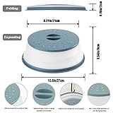 Suitable for most microwave oven our collapsible microwave plate cover is 105 inch diameter and 33 height when expandedtall enough and big enough to cover most standard plates Spacesaving our collapsible microwave cover expand to 35 inch but collapses 1 inch only its easy to storeBlue color is easy to find in drawers and cabinets